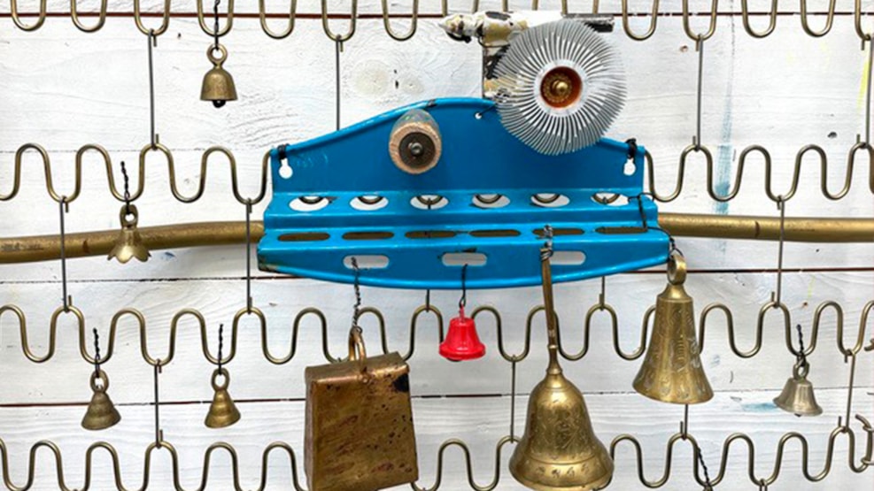 In the southernmost art tower on Langeland – Art Tower 12 – Bjørn Eriksen invites you into his poetic and playful sound universe. Here you will not encounter traditional instruments, but homemade sound machines created from everything from bed bases and metal shot glasses to bellows. The tower, which has been given the title ‘The Bell Tower’, is a tribute to creativity, recycling and the unexpected paths of sound.