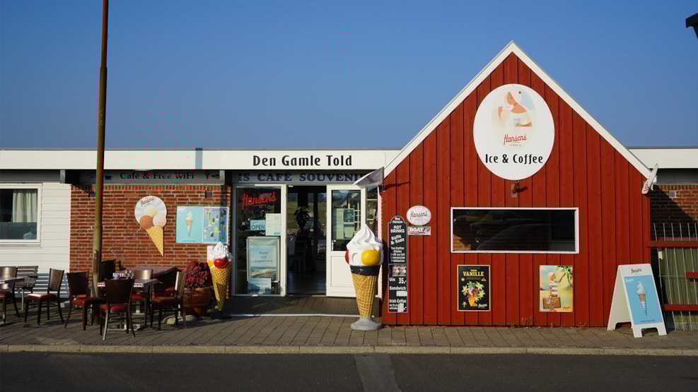 Take a break at the harbour café Den Gamle Told in Bagenkop and enjoy delicious ice cream, coffee or a glass of wine – both indoors and outdoors.